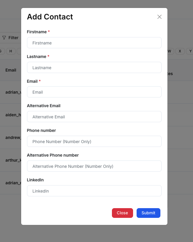 - Store and manage contact information (email, phone, LinkedIn, address, etc.)