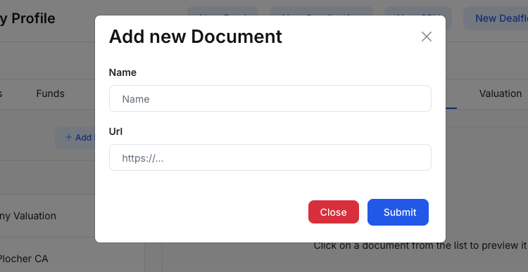2. Enter a clear Name (recommend a consistent naming convention, e.g., “001 – Company Valuation”).