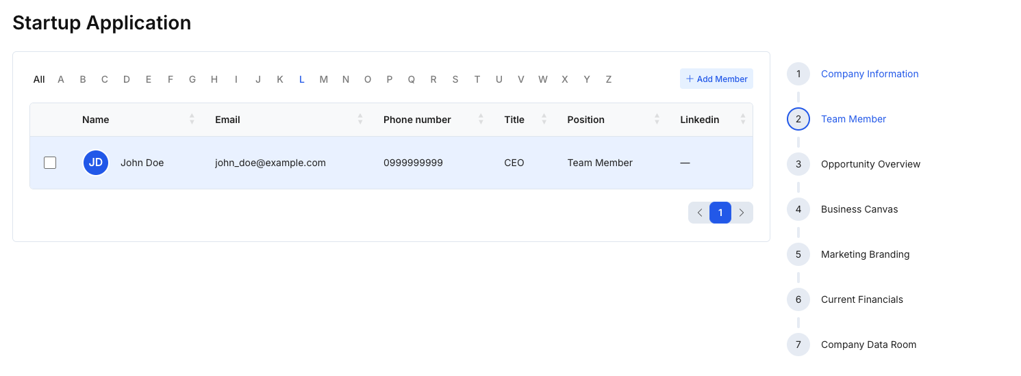 Startup Application: Team Member