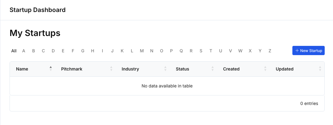 - From your Startup dashboard, click New Startup.
